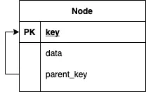 Sau đây là ERD cho cấu trúc nút của cây muốn biểu diễn trong SQL