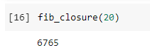 Sau đó, chúng ta có thể sử dụng closure này để tính các số Fibonacci. Cho ví dụ, chúng ta muốn hiện chuỗi Fibonacci đến số thứ 20.