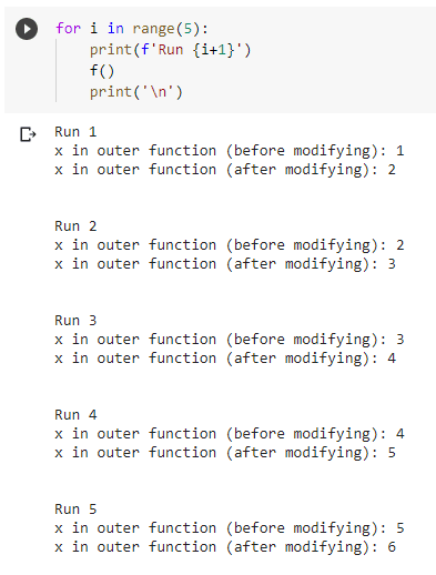 print(f'x in outer function (before modifying): {x}')