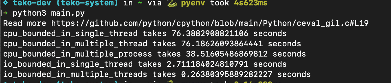 Mình có implement một đoạn code để test tính năng multi-thread của Python ở đây và đây là kết quả: